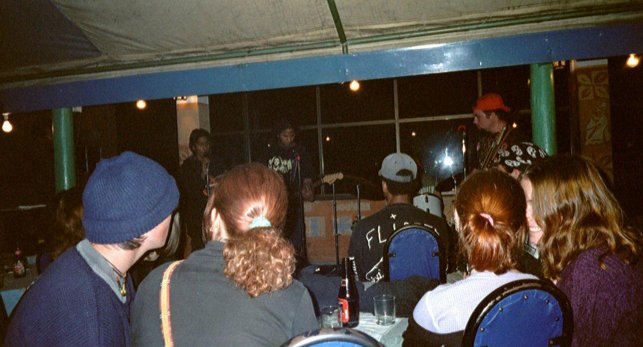 Het is vanavond open mike night. Iedereen die zich inschrijft mag op het podium klimmen, als ze zelf instrumenten of een cassettebandje meenemen.