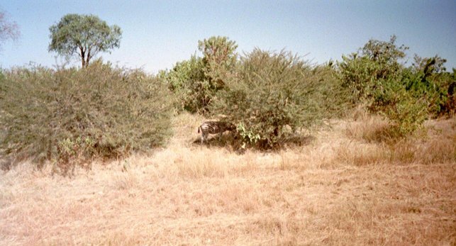 Dinsdag. Vandaag moet er een grotere afstand afgelegd worden dan gisteren. We gaan van Chinhoyi naar een camping aan het Karibameer. Onderweg is het nodige te zien. Niet alleen een mooi landschap, maar ook zebra's, en een paar lui hebben een olifant aan de kant van de weg gezien.