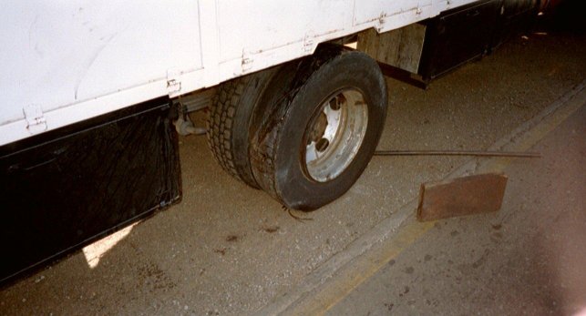 Vlak voor Lusaka krijgt de truck een klapband, recht voor een
